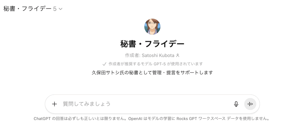 私の秘書AI「フライデー」さんも