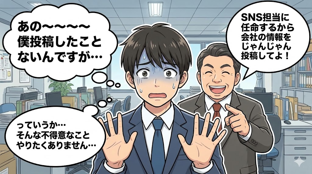 「SNS担当に任命するから会社の情報をじゃんじゃん投稿してよ!」